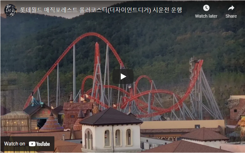 아시아 최초로 도입된 롤러코스터입니다. 360도 회전하는 구간이 많으니 엄청난 스릴감을 느끼게 해 주겠네요. 시운전 영상 한 번 보시죠.