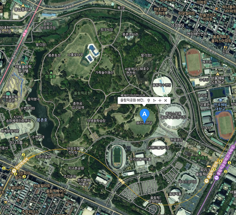 여기서 잠깐, 88잔디마당이 어디냐고요? 올림픽공원을 많이 가 보신 분들은 바로 아실텐데, 모르시는 분들은 아래 링크를 타고 자세한 위치를 확인하세요.