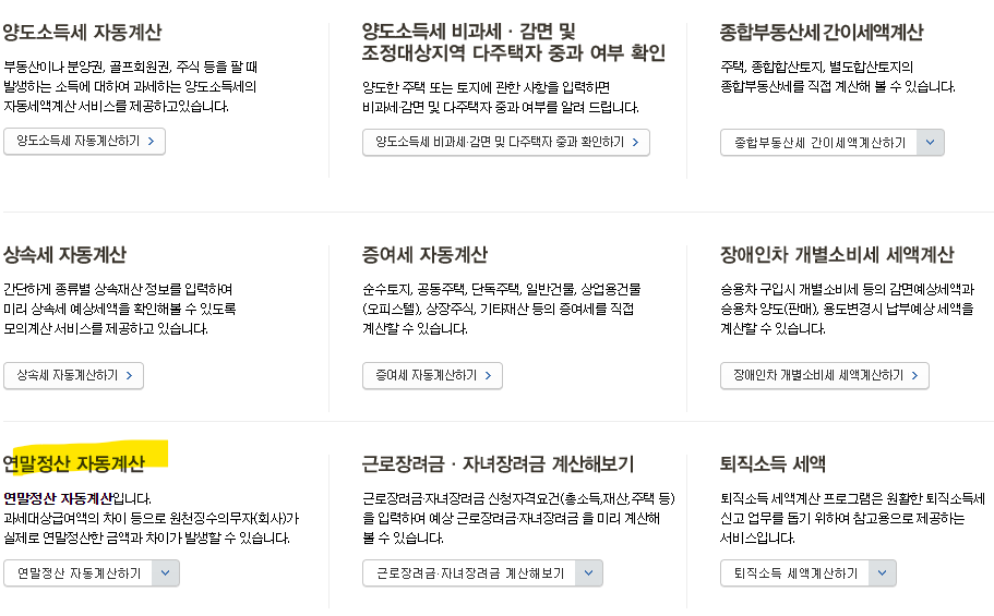 세금모의 계산 클릭 - 연말정산 자동계산 페이지로 접속
