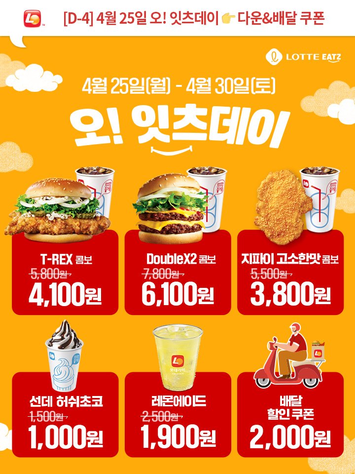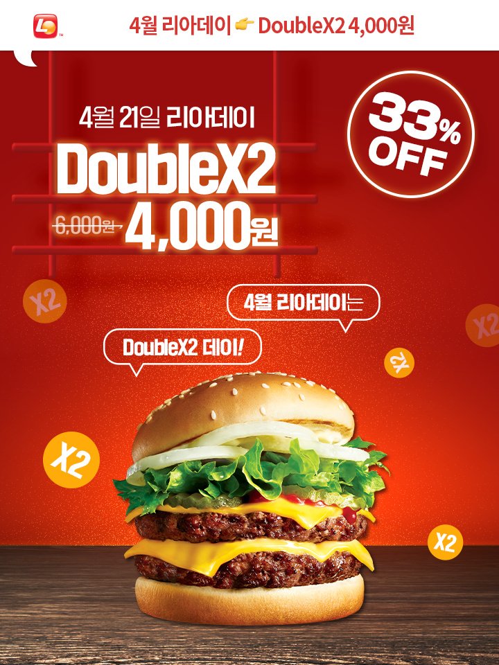 4월 리아데이 더블X2 4천원 롯데리아 행사